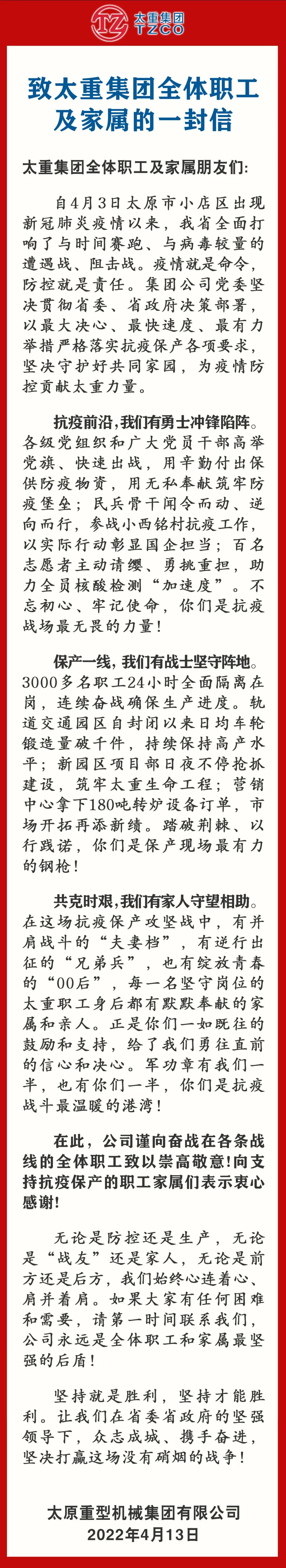 致太重集团全体职工及家属的一封信