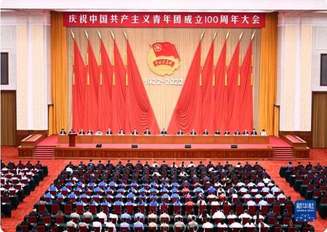 5月10日,庆祝中国共产主义青年团成立100周年大会在北京人民大会堂隆重举行。中共中央总书记、国家主席、中央军委主席习近平在大会上发表重要讲话。新华社记者 燕雁 摄