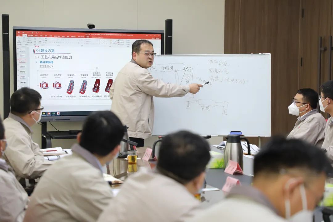 现场调研结束后,韩珍堂主持召开工程机械项目建设推进会。组织参会人员现场画图、现场分析、精准拆解、明确分工、制定工期,把会议开在实处,发现问题当下推动、当下解决。