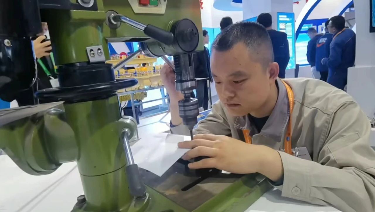 太重的产品模型种类繁多,太重职工也大放异彩!在三晋工匠风采展示墙上,集团公司职工樊志勤、陈宾两位劳模工匠的照片引人注目,生动展示着太重人的精神面貌和工匠风采。齿传分公司职工单璐还现场展示了技艺绝活,引得参观者驻足围观。大家屏息凝神、目光专注,只见操作者在手机上放置了一张厚度仅有0.1毫米的A4纸,通过手动操作台钻在纸张上精准地打出了圆孔,但手机屏幕完好无损,出神入化的技艺赢得了现场观众的阵阵掌声。