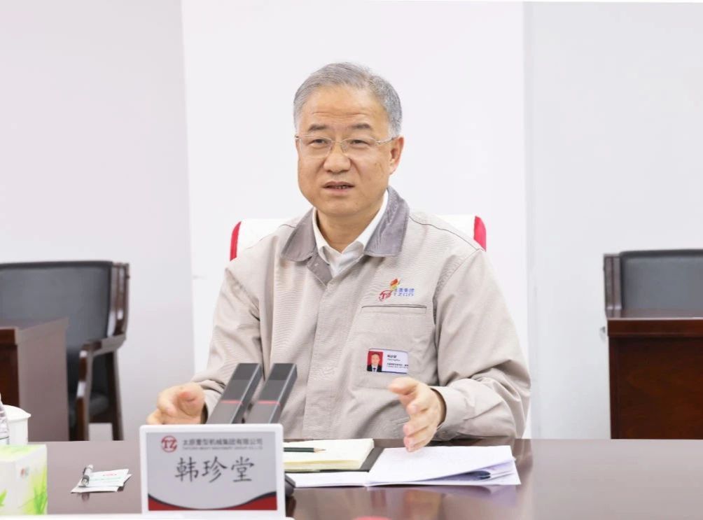 韩珍堂对客人一行的到来表示热烈欢迎,对北起院长期以来的大力支持和帮助表示衷心感谢,并介绍了公司的产品种类、产业布局、科技创新等方面的情况。他说,当前,太重围绕高标准推进新型工业化,聚焦“高端化、智能化、绿色化、国产化”产品发展定位,锚定“5+3”产品规划,大力推动传统产业改造升级和战略性新兴产业培育壮大,自主设计研发纯电、氢能、甲醇等多种新能源动力装备,积极布局未来产业。公司新园区建设不断推进,产能规模实现历史性跨越升级,抓订单成为企业实现既有规模又有效益的关键。此外,公司还高度重视科技创新,持续加大研发投入,加强技术团队激励,积极参与标准制定。北起院在技术标准领域拥有丰富的专业经验和成熟的人才团队,希望双方可以加强市场化合作,在超前标准制定、起重机轻量化等领域加强交流,将北起院优势业务对接到太重发展需求中,推动双方合作向更深、更广、更实的方向迈进,实现共进共赢、共同成长,争取为行业带来更多革命性成果,夯实装备制造业转型发展根基。