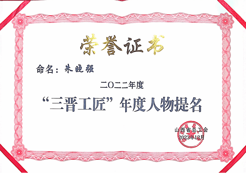 近日,在山西省总工会、山西日报和山西广播电视台共同主办的2022“三晋工匠”年度人物发布晚会上,公司职工朱晓强喜获2022“三晋工匠”年度人物提名奖。