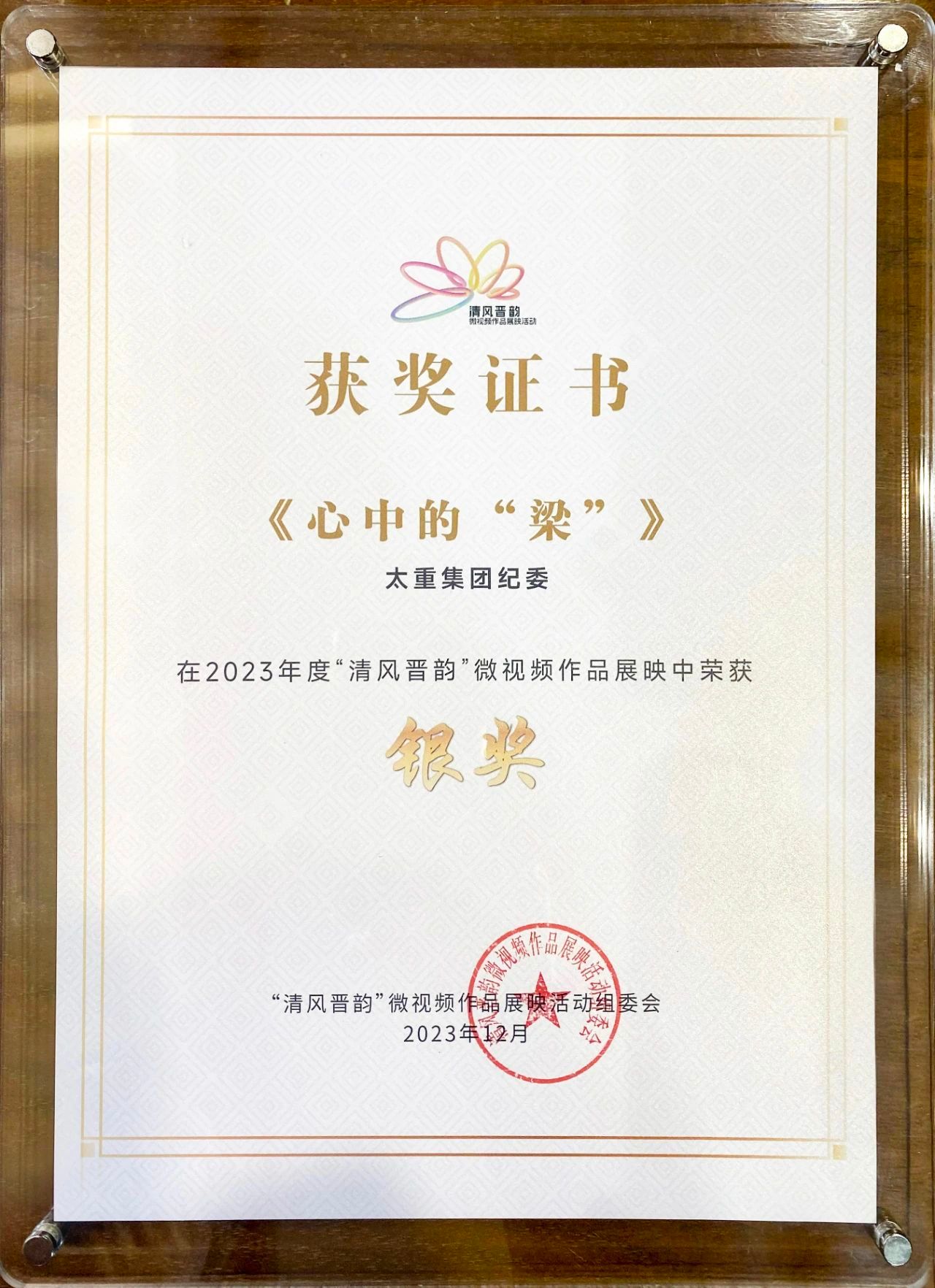 廉洁自律,心中有梁!1月28日,由山西省纪委监委宣传部、晋中市纪委监委联合举办的2023年度“清风晋韵”微视频作品展映活动获奖结果揭晓。经过主办、承办、协办单位和专家的共同评审,公司报送的微视频《心中的“梁”》在众多作品中脱颖而出,获评银奖。
