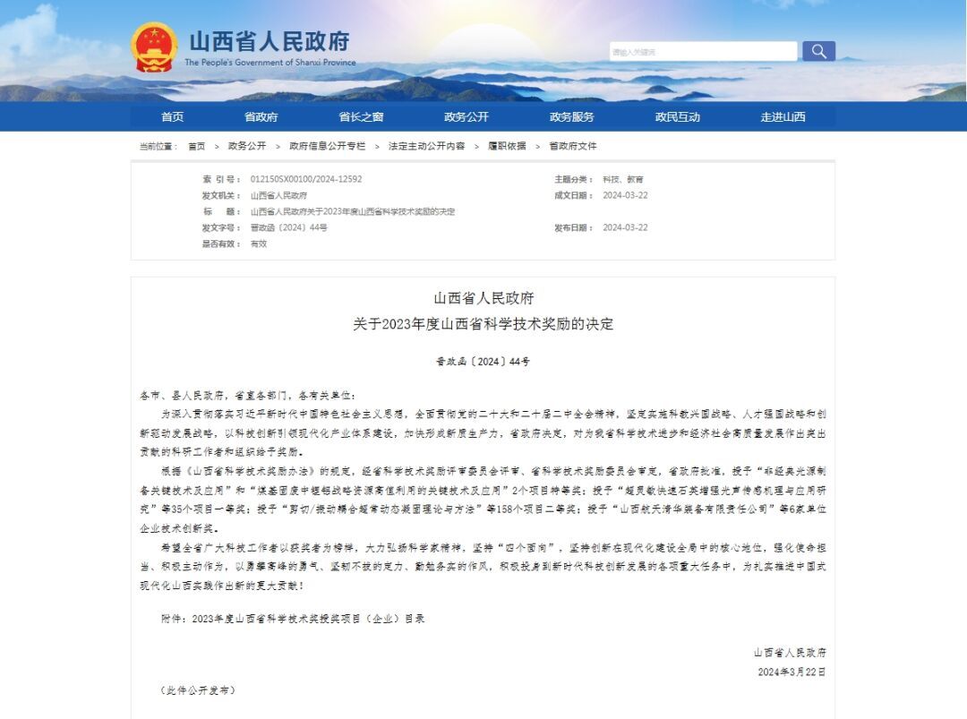 山西省科学技术奖是全省科学技术类的最高奖项,由山西省人民政府设立,旨在表彰为科学技术进步和经济社会发展作出杰出贡献的科技工作者和组织。该奖项申报门槛高、评审标准严,代表了山西科学技术领域的最高水平,既是衡量全省科技创新能力的一把标尺,也是引领全省科技创新方向的重要航标。此次评选中取得的累累硕果,见证了太重科技工作者向下深耕、向上突破的不懈追求,折射出太重强大的科研实力,进一步提升了太重的品牌形象和社会声誉,开启了公司聚焦科技创新、加快培育和发展新质生产力的新篇章。