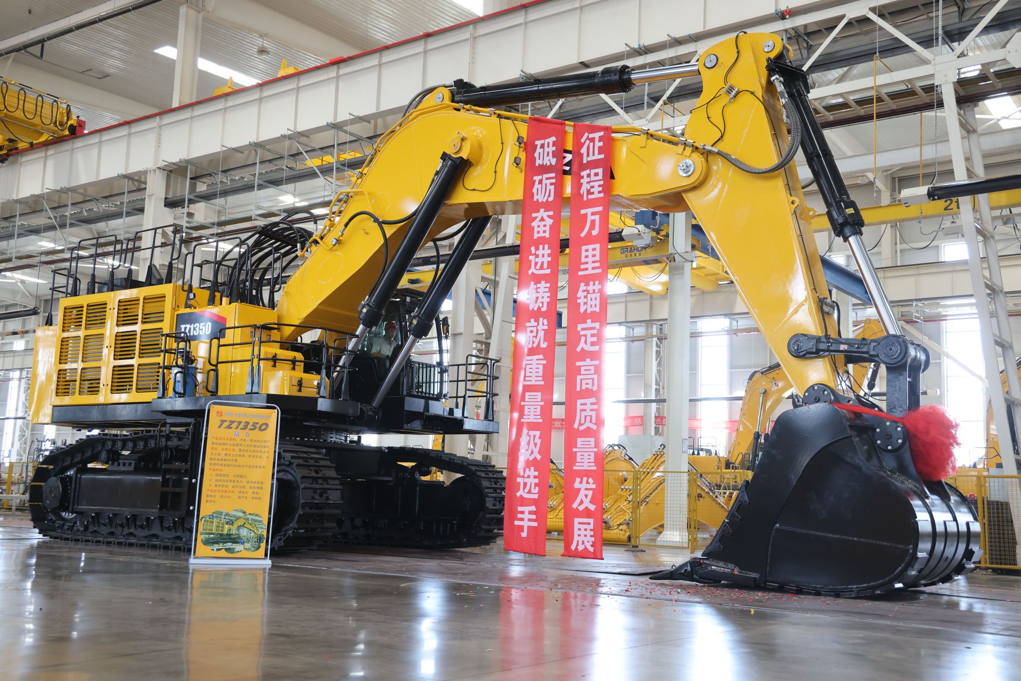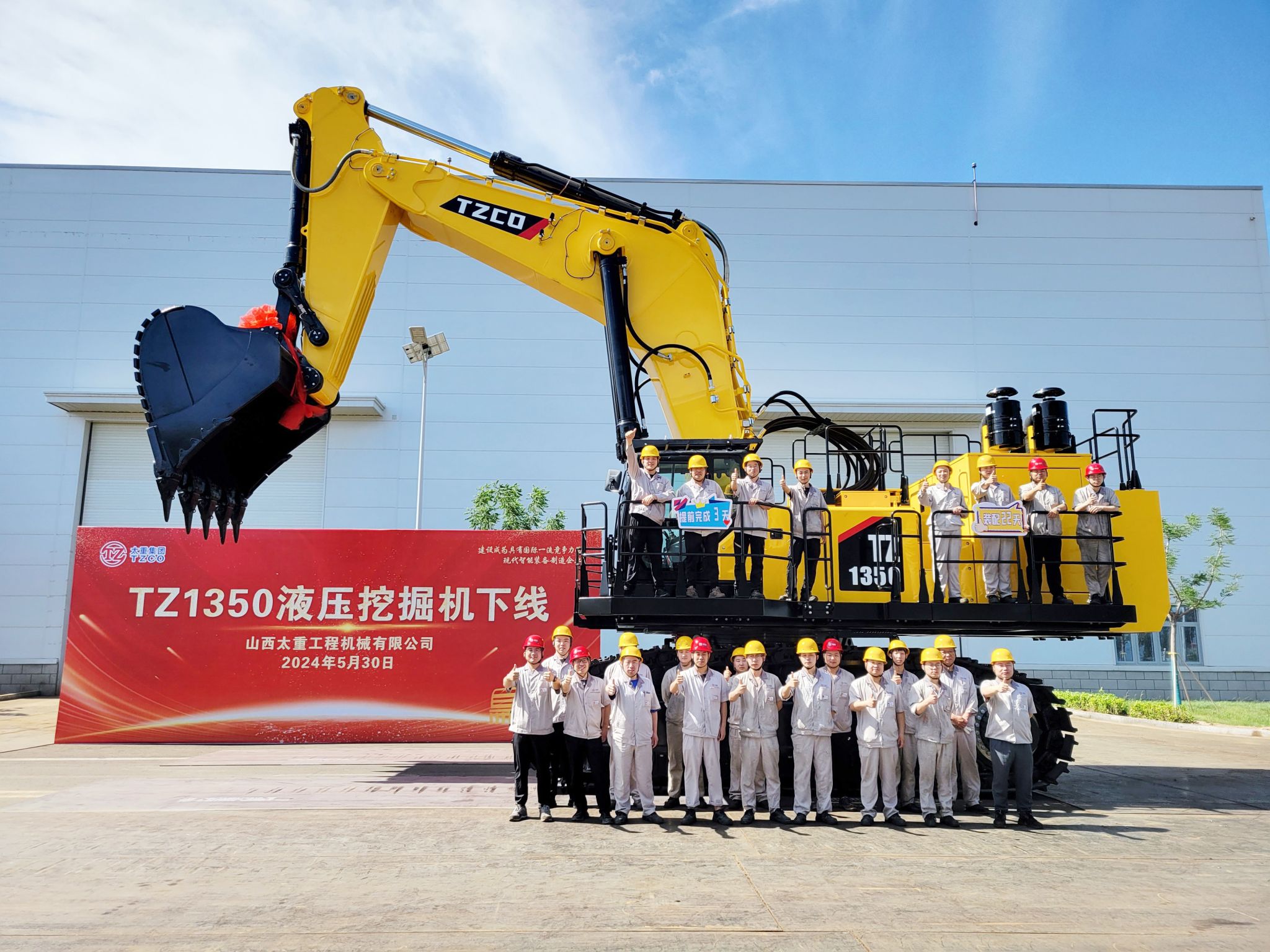 5月30日,太重智能高端液压挖掘机产业园区迎来一位超百吨级的“重量选手”,它机身明黄、身带红花、顶天立地,在众人期待目光中缓缓驶出,这台TZ1350是太重自主研发、推入市场的又一款大吨位液压反铲挖掘机,展开“太重臂膀”,擎起广阔未来。针对露天矿山高温、高寒、高海拔等情况,这个“大家伙”可是露天矿山采掘的一把好手