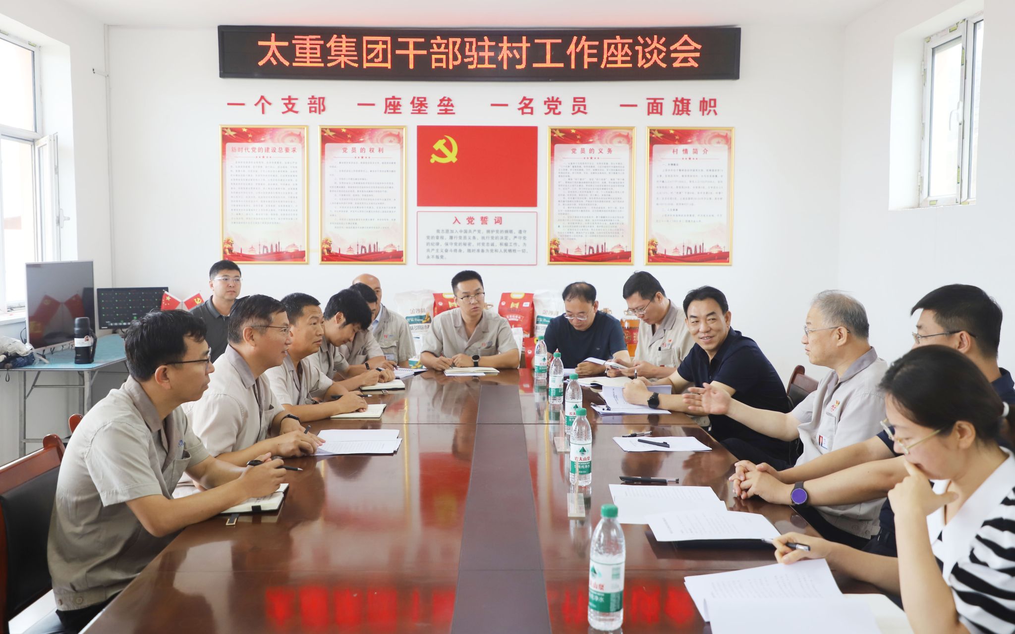 围绕如何进一步做好驻村帮扶工作,韩珍堂表示,实施消费帮扶是巩固拓展脱贫攻坚成果同乡村振兴有效衔接的重要举措,要想方设法做好消费帮扶、拓展消费帮扶渠道,保持力度不减、标准不降,为农村低收入人口增收致富、促进特色产业提质增效贡献太重力量。教育是乡村振兴的重要基石,要进一步加强基础教育的帮扶力度和支持力度,提升改善学校教育环境,补齐农村教育短板,在做好“太重劳模奖学金”的同时,积极探索“太重科技创新奖学金”,推动乡村基础教育高质量发展。驻村工作队员长期在外、远离亲人,要重点关心照顾,在激励措施、能力提升、管理考核、工资待遇等方面有所倾斜,激励大家在乡村振兴一线实干担当、建功立业。要扛牢扛实国企社会责任,通过企业先进的管理经验,不断夯实驻村帮扶各项工作,加快推进帮扶地治理体系和治理能力现代化,为乡村振兴事业蓬勃发展蓄势赋能。赵斌对太重多年来的支持和帮助表示感谢,他说,太重驻村工作队连续两年在全省驻村帮扶工作考核评价中位列第一方阵,以卓越的工作成效走在全县帮扶队前列,展示了太重人艰苦奋斗、甘于奉献的精神风貌,希望今后继续努力,积极推广先进经验,发挥引领示范带头作用。大家纷纷表示,将继续压紧压实责任,把组织的关怀转化为干事创业的不竭动力,以驻村帮扶“六化十到位”为抓手,在目标靶向上再聚焦、在重点工作上再发力,以过硬的本领和作风完成好各项工作,切实提升帮扶实效,为有力有效推动乡村全面振兴再立新功。路的尽头本没有路,但总会有先行的太重人开辟出新的路,驻村帮扶如此,宏图伟业如此,建设具有国际一流竞争力的现代智能装备制造企业亦如此!打造乡村振兴太重标杆,路,一直都在!