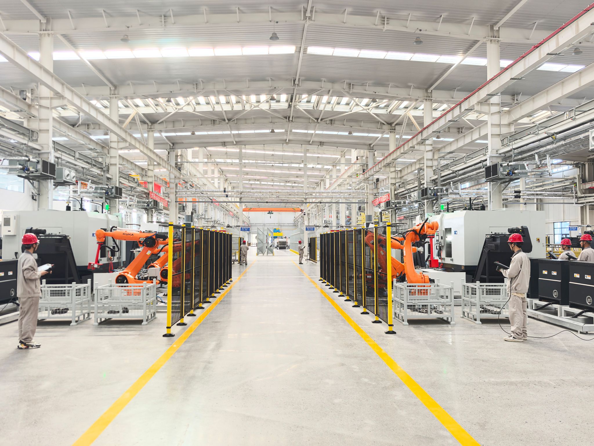 “四轮一带”项目是集团公司为推进“3+5+3”产品布局,提升内部“供应链”制造能力新建的高端化、智能化、现代化工厂,集锻造、加工、热处理、焊接、装配、涂装等全工序为一体,可实现0.8-200吨全系列挖掘机底盘“四轮一带”部件的批量生产,具备年产十万条履带、近百万件四轮件的生产能力,可满足五万台套主机底盘件供货能力。此次下线的履带即为“四轮一带”中的“一带”,是履带式工程机械的核心部件之一,其质量和性能直接关系到整机的稳定性和工作效率。产品好不好,源头产线很重要。公司打造的这条履带装配线可不一般,机器人+3D视觉系统辅助装配,自动测距四爪定位保证装配精度,组装、压装、打卷、浸漆各道工序无缝衔接,每5分钟即可下线一条履带,行业领先的自动化水平将为太重做精批量产品保驾护航。此次配套件履带实现批量生产,意味着公司能够依靠先进产线更有效地控制产品的一致性和可靠性,公司主机产品整机质量控制水平进入新阶段。从第一根钢柱起吊到第一台设备进厂,从第一条产线贯通到第一批产品下线,在这个过程中,链条公司的年轻团队充当了主力军。没有任何经验可以借鉴,那就从实践中学习、在挑战中成长,大家瞄准项目目标一路披荆斩棘。“从无到有,太不容易!”链条公司履带作业区负责人张厚东每当回顾过往依然感慨万千。产品下线只是第一步,达产达效更是关键一环。下一步,链条公司将持续聚焦做精批量产品,推进产线贯通,完善源头工序调试,在保证内部供应的同时,积极开发外部市场,让太重“四轮一带”产品走向更大发展空间,以扎实可靠的“底盘”功夫为公司高质量高速度发展蓄势赋能!