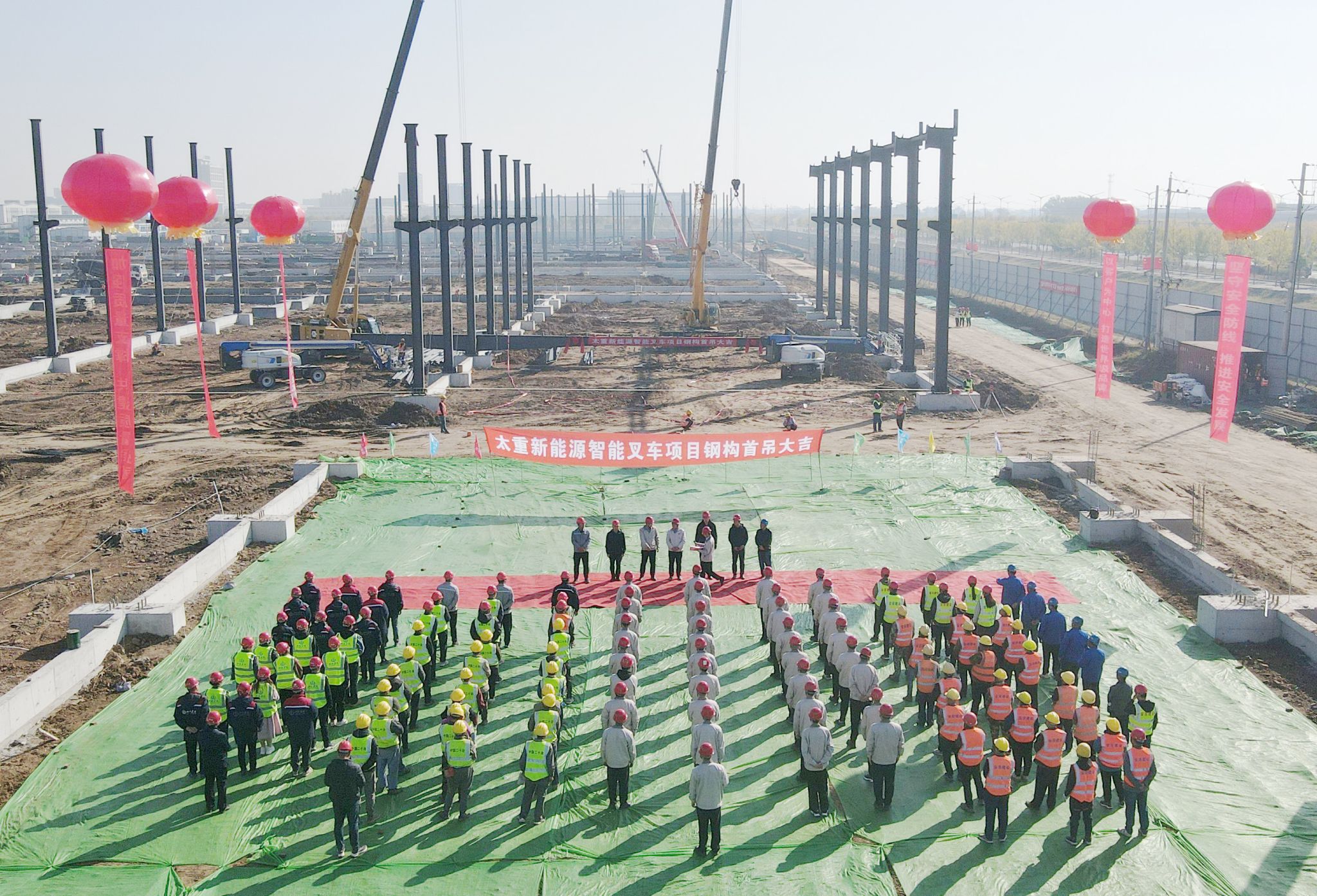 今年8月19日,全省开发区“三个一批”活动在太重叉车项目举行,正式拉开项目建设序幕;今天,第一根钢梁起吊,现代化厂房即将拔地而起。集团公司党委书记、董事长韩珍堂到现场调研时指出,叉车项目建设要再鼓一把劲、再添一把力、再上一层楼!全体项目建设者将瞄准“两个100天”既定目标,确保年底完成钢结构主体、厂房封闭,确保明年春天完成地面硬化、设备进厂调试试生产,全力以赴,早日将项目打造成为全球最具竞争力的新能源叉车智能制造基地。