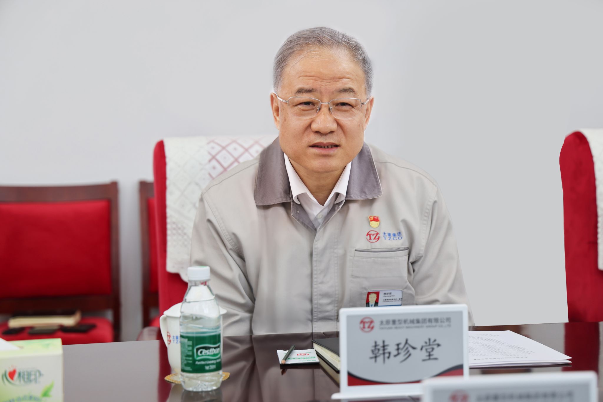 韩珍堂对客人一行的到来表示热烈欢迎,对汾飞集团长期以来的大力支持和帮助表示衷心感谢,他说,近年来太重以科技创新推动产业创新,大力推进现代化产业体系建设,加快发展新质生产力。在工程项目建设上稳扎稳打、循序渐进,秉持着成熟一个、推动一个的原则,加速扩展“一总部、多园区”发展格局,十里太重新城正成为制造业振兴崛起的重要地标,一个活力满满、热气腾腾的太重强势崛起。同时,公司聚焦“高端化、智能化、绿色化、国产化”产品定位,构建起了“3+5+3”太重特色产品体系,与多家行业头部企业达成战略合作协议,在畅通供应链、延伸产业链、提升价值链方面积极作为,推动装备制造业高质量发展。潇河绿智城是山西的未来之城,汾飞集团与太重集团同属国有企业,有着广阔的合作空间,希望双方进一步建立高效沟通机制,加强协调对接,探索构建更为广泛、更加全面的合作关系,共同为谱写中国式现代化山西篇章贡献力量。