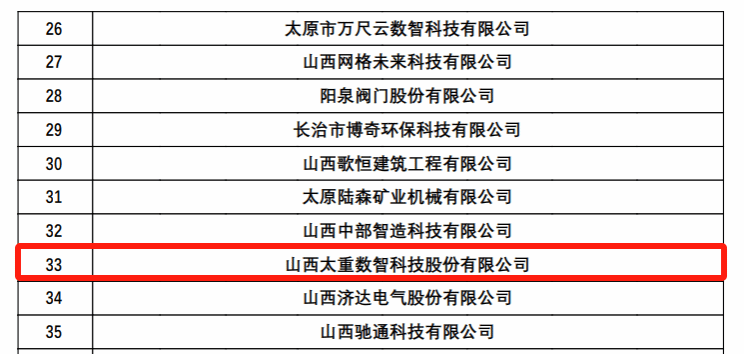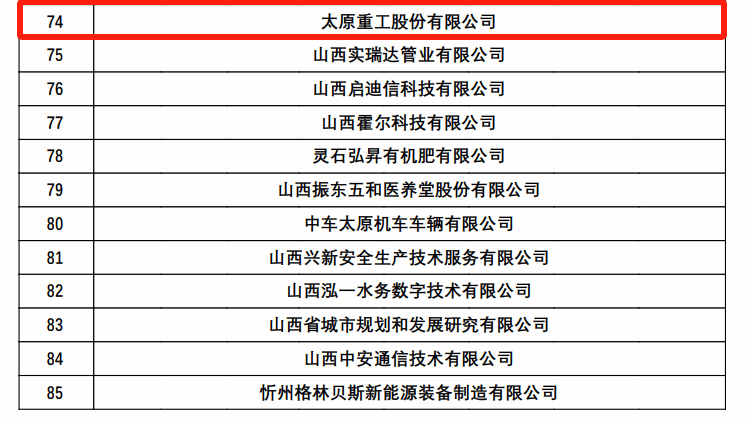 截至目前,太重集团共有太原重工、轨道公司、重工工程公司、察右公司、数智公司、太重煤机、太重滨海、太重向明、太重榆液、太重榆液济南公司、智奇公司、山西煤机12家公司入选高新技术企业,成为引领装备制造业转型发展的“排头兵”。