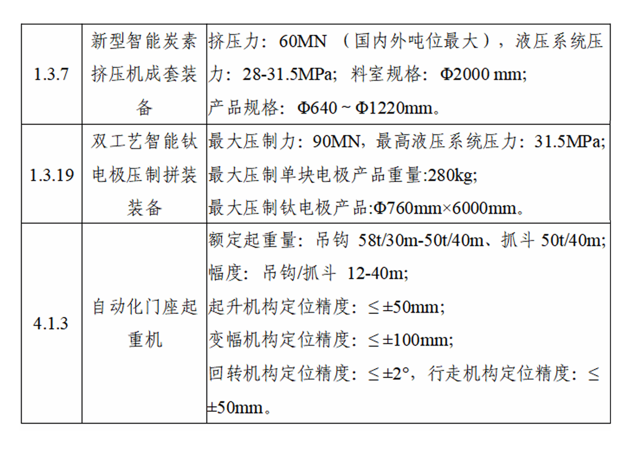 近日,天津市工业和信息化局发布《天津市首台(套)重大技术装备推广应用指导目录(2024版)》。重大技术装备是国之重器,事关综合国力和国家安全。首台(套)重大技术装备,是指通过原始创新、集成创新或引进技术消化吸收再创新,实现技术突破、拥有自主知识产权的装备产品,包括成套设备、整机设备及核心部件等,也是衡量企业核心竞争力、体现制造业高质量发展水平的重要标志。此次太重入选的三个项目,在不同工业领域都发挥着非常重要的作用——主要用于电弧炉炼钢用石墨电极、电解铝阴极和阳极、负极材料与石墨坩埚的挤压生产,具有连续高效、高质量、绿色智能生产的特点。产品广泛用于冶金、能源、化工、半导体和新能源汽车等领域。兼容轴向压制和径向压制两大工艺体系,能够生产多种类型的压制产品,实现多种拼装方式,展现了国内钛电极智能高端装备的先进水平。该设备生产的钛电极最终被转化和加工成钛合金零件,主要用于航空和舰艇领域。具备多机协同、远程控制、安全防护、料斗料位检测等先进技术,不仅显著提升了现有门座起重机的作业性能,减轻了操作人员的劳动强度,还可以通过远程操控、智能运维等方式,实现全自动及半自动卸船、全自动及半自动装船作业。