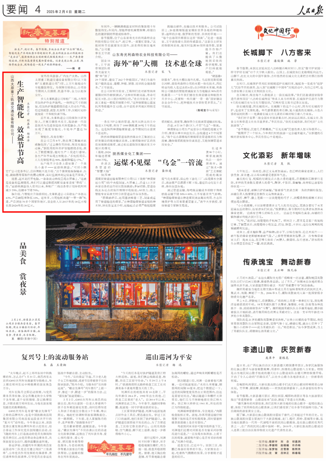新春伊始,万象更新,太重以亮眼开局备受瞩目,荣登媒体热榜。生产智能化、效益节节高!2月4日,人民日报《新春走基层·特别报道》走进轨道交通行业首座“灯塔工厂”——太重轨道公司车轮厂二线,感受智能化生产的澎湃脉动。数据见证非凡成就:劳动生产率提高43%,产品缺陷率降低33%,营业收入从2017年的18亿元增长到2024年的30亿元,清晰勾勒出太重向智能化大步迈进、效益持续上扬的坚实步伐。2月5日,山西新闻联播《节后上班首日 我省各地奋进“春天里”》栏目也将镜头对准太重工程起重机项目建设现场,工人们忙碌而有序,大型机械轰鸣作响,努力打造高端装备制造双链双千亿产业集群,彰显太重人奋进争先的蓬勃朝气与豪迈干劲!春启新程,开局冲刺!2025,让我们以奋斗之名,携手共进,续写太重新的辉煌!