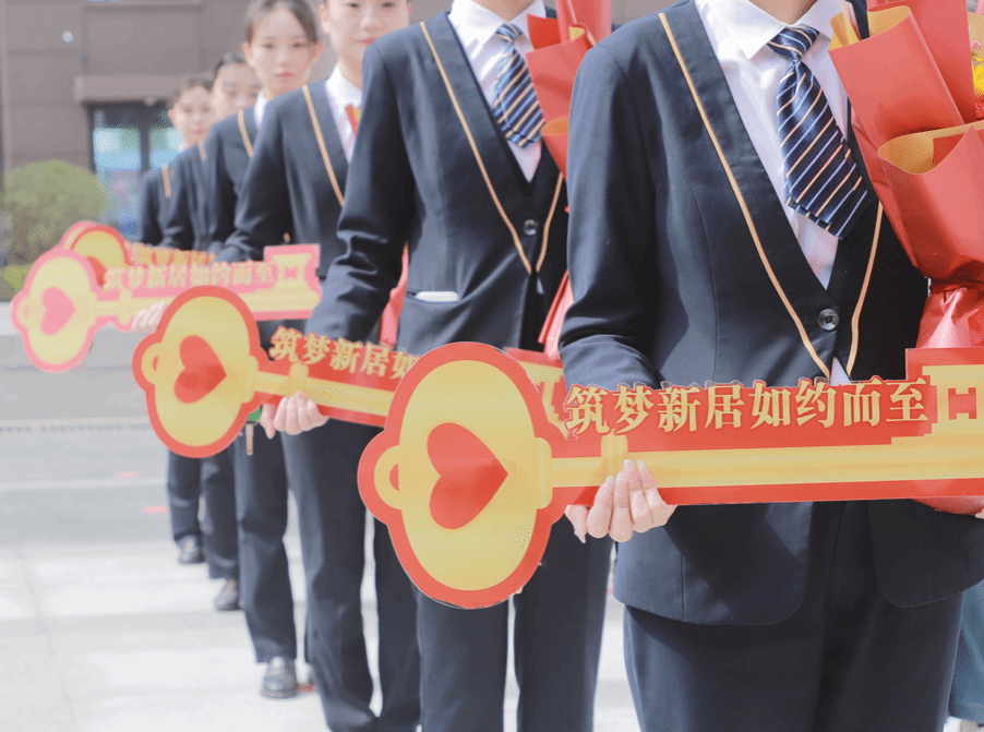 仪式上,8门金色礼炮齐声轰鸣,公司领导将金灿灿的新房钥匙交到职工代表手中。手握通往新家园、新生活、新美好的钥匙,此时此刻,万千期待终不负美好相见,理想生活的蓝图自此开启,职工们喜上眉梢、笑容满面。