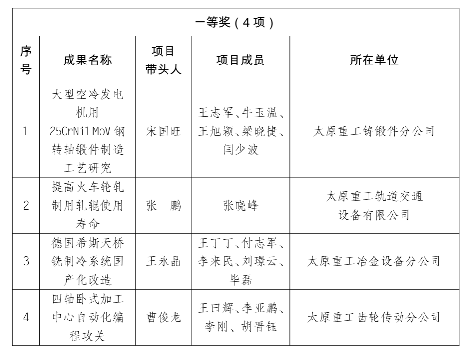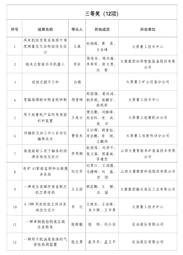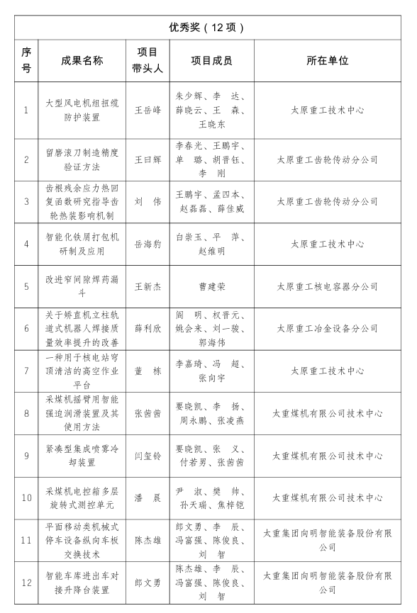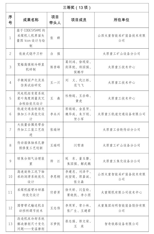 近日,2025年全省“五小”创新大赛及2025年全市“五小”创新大赛获奖名单相继揭晓,集团公司申报的优秀成果取得了可喜成绩。其中,荣获山西省二等奖8项、三等奖12项;荣获太原市一等奖4项、二等奖8项、三等奖13项、优秀奖12项。澳门十大信誉好的平台获2025年全省“五小”创新大赛优胜单位。澳门十大信誉好的平台工会、太重煤机有限公司工会获2025年全市“五小”创新大赛优秀组织单位,太原重工起重机分公司、太原重工技术中心获2025年全市“五小”创新大赛优胜单位。
