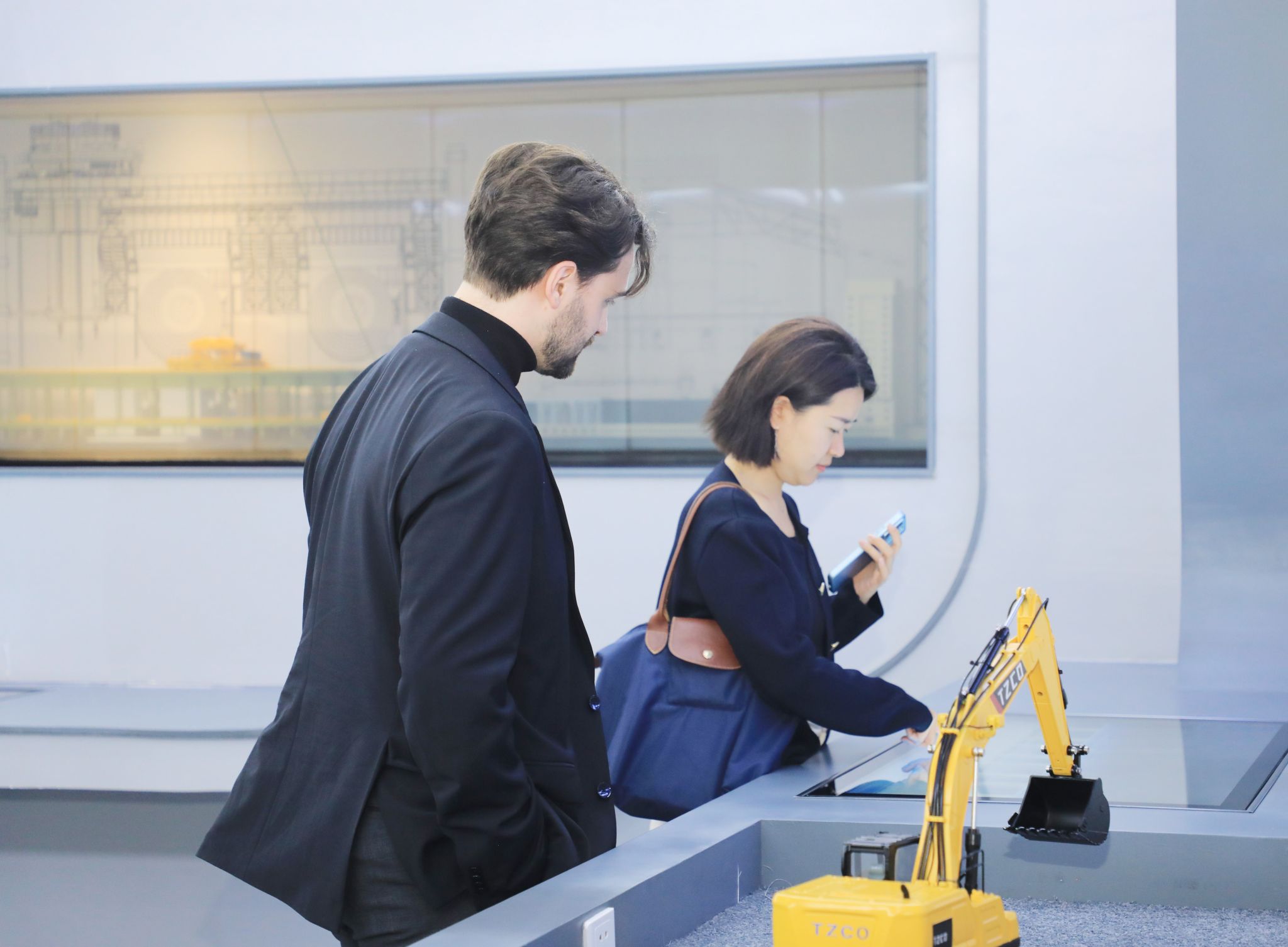 参观过程中,代表团一行沿着太重75年的发展长廊,深入了解了公司推动重型机械与工程机械融合发展的转型过程。宣传片《国之太重》中,一系列高端装备让代表团直观感受“大国重器”的科技含量;在发射塔架模拟演示区,不少成员举起手机记录这一场景;在5G远程操作挖掘机演示区,大家实地操作,亲眼见证重型机械在数字化加持下精准完成挖掘、行走、卸载等一系列动作,纷纷点头称赞。期间,大家相互探讨、深入交流、不时询问,结下友谊、留下机会。