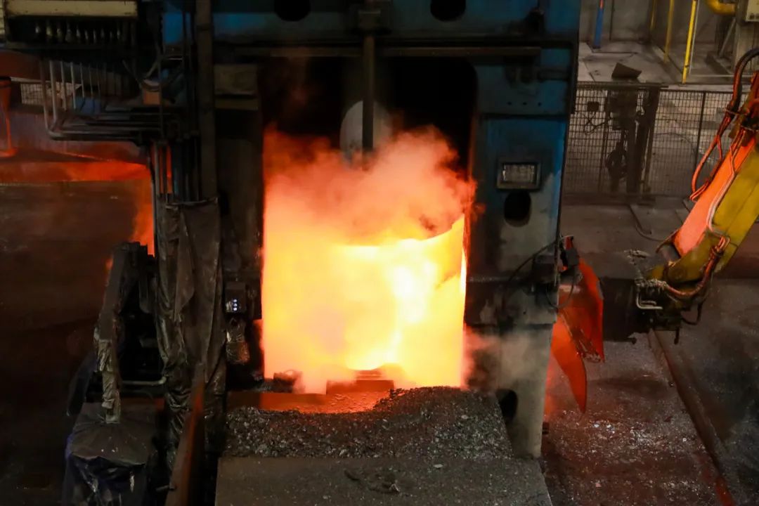 然后对切割好的钢锭进行加热。加热好之后,便可以进行锻造轧制了,通俗地说,就是“塑型”。