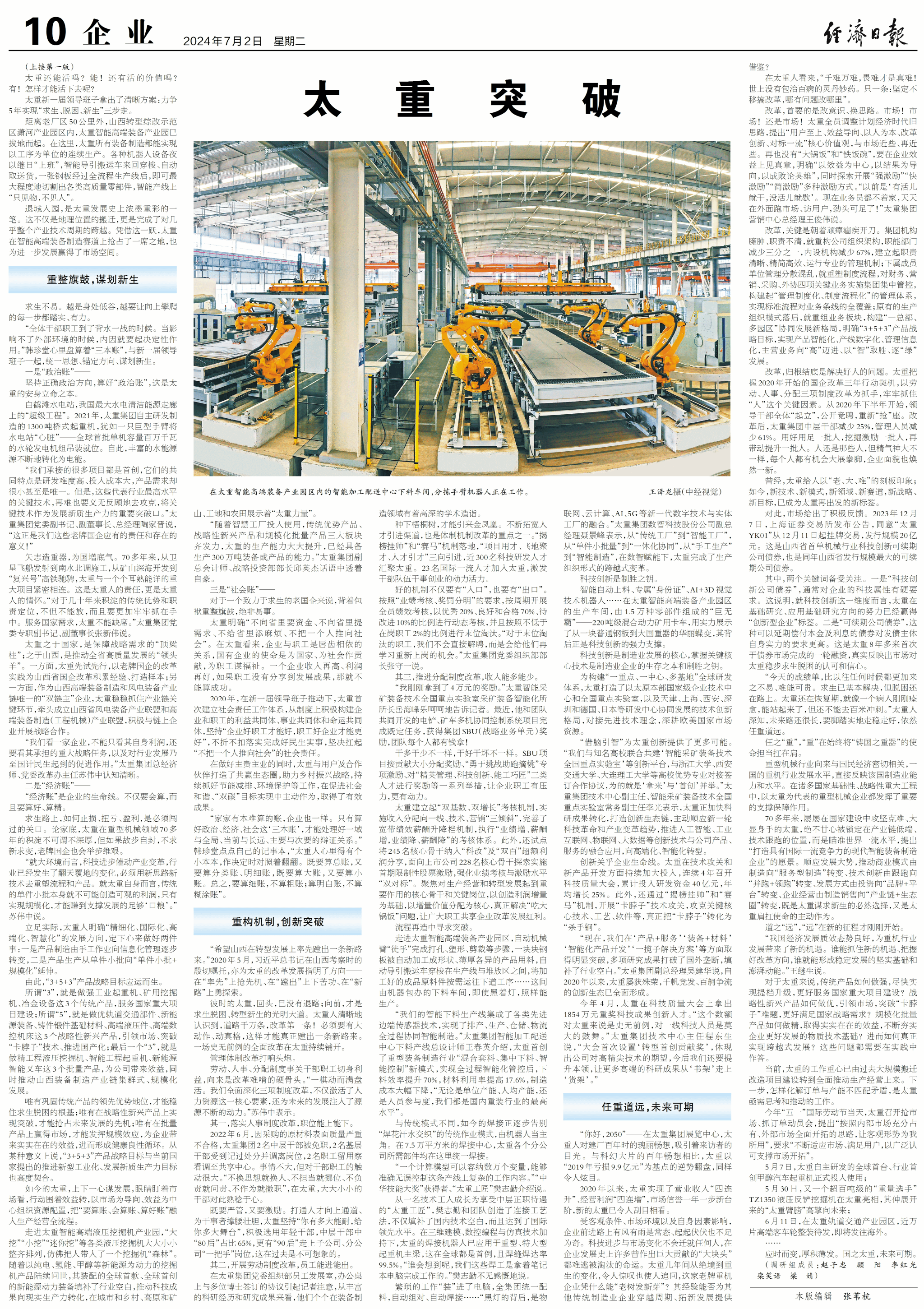 曾经,太重给人以“老、大、难”的刻板印象;如今,新技术、新模式,新领域、新赛道,新战略、新目标,已成为太重再出发的新标签。
