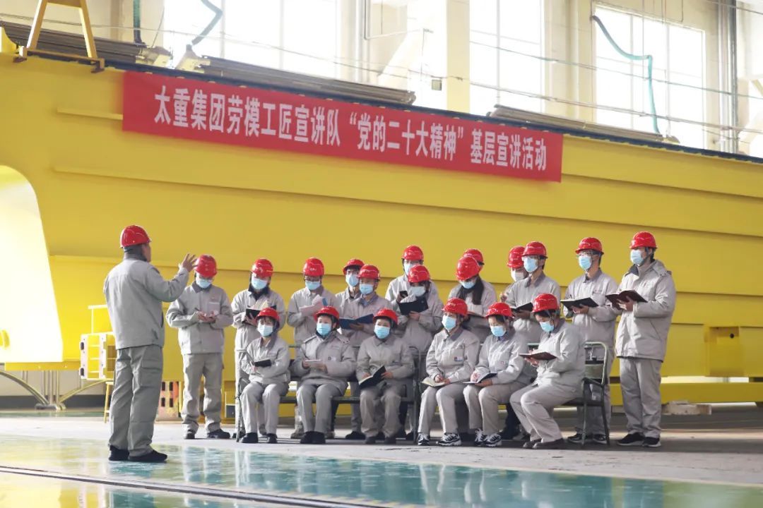 在党和国家的培养下,太重集团集聚形成了一批劳模工匠先进典型群体。为充分发挥公司“劳模工匠”的集聚优势,太重专门组建了一支理论功底深、表达能力强、有宣讲经验的人员组成了“劳模工匠”宣讲队。下一步,宣讲队将继续深入基层一线、车间班组开展党的二十大精神宣讲活动,进一步发挥劳模工匠榜样激励和示范带动作用,传递奋斗之声,汇聚奋进之力,激励广大党员干部职工感悟思想伟力,扛起使命担当,为建设制造强国贡献力量,推动党的二十大精神在太重落地生根、开花结果。