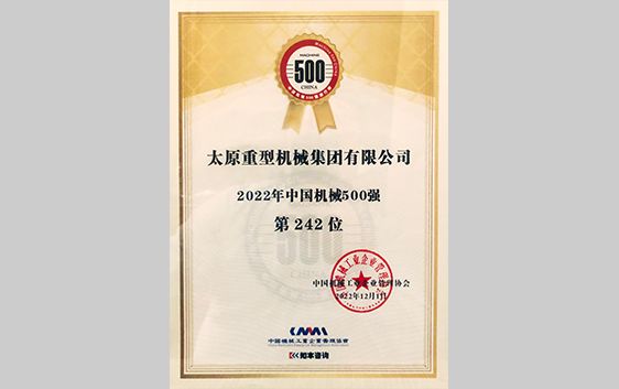 2022年12月21日,全球暨中国机械500强研究报告发布会在陕西西安举行,太重集团凭借优异表现和雄厚实力继续蝉联上榜,并跃升至第242位。