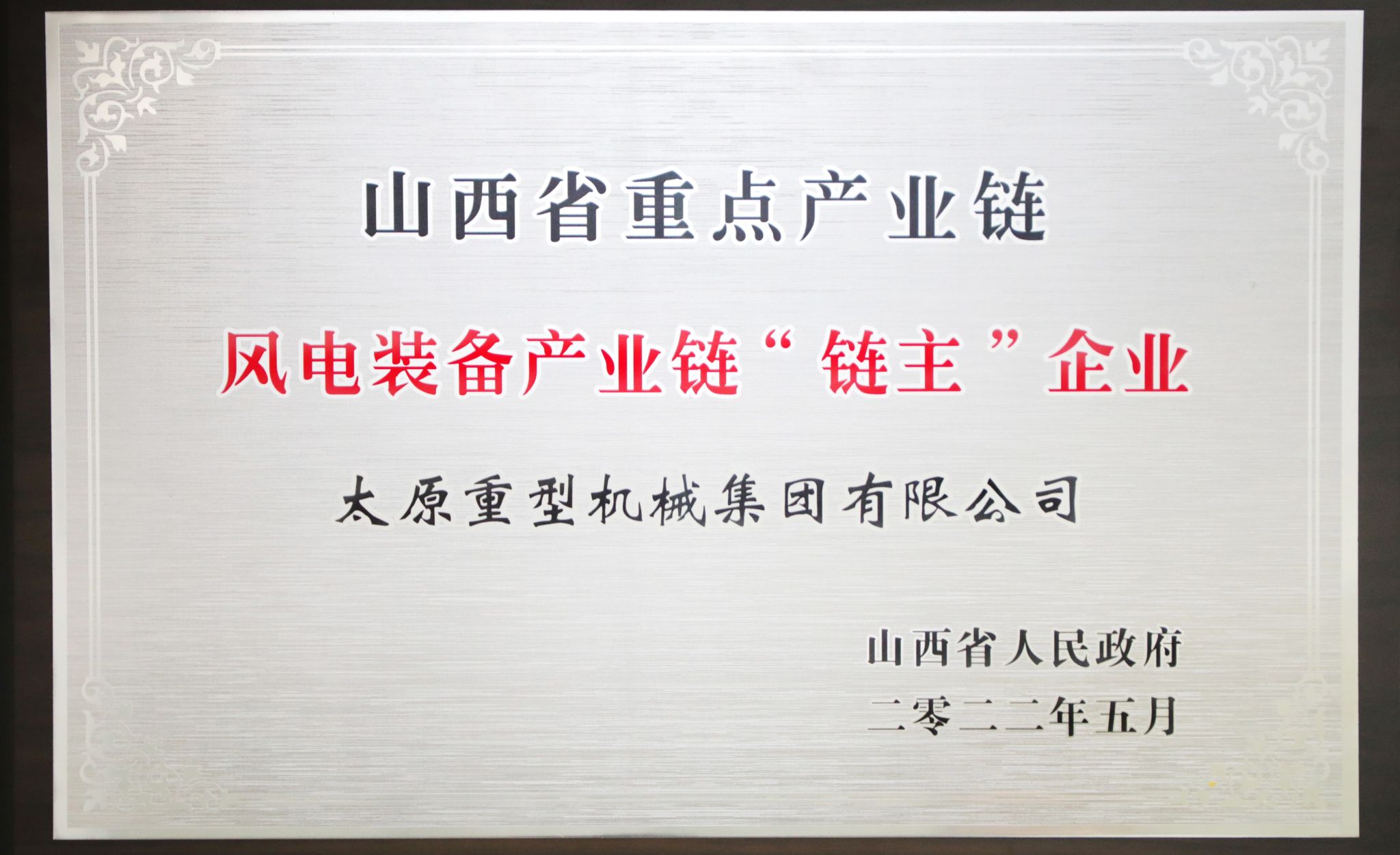 2022年5月27日,全省重点产业链链长制工作会议召开,太重集团凭借在高端装备制造和风电装备领域的突出优势成为首批重点产业链的“双链主”企业。